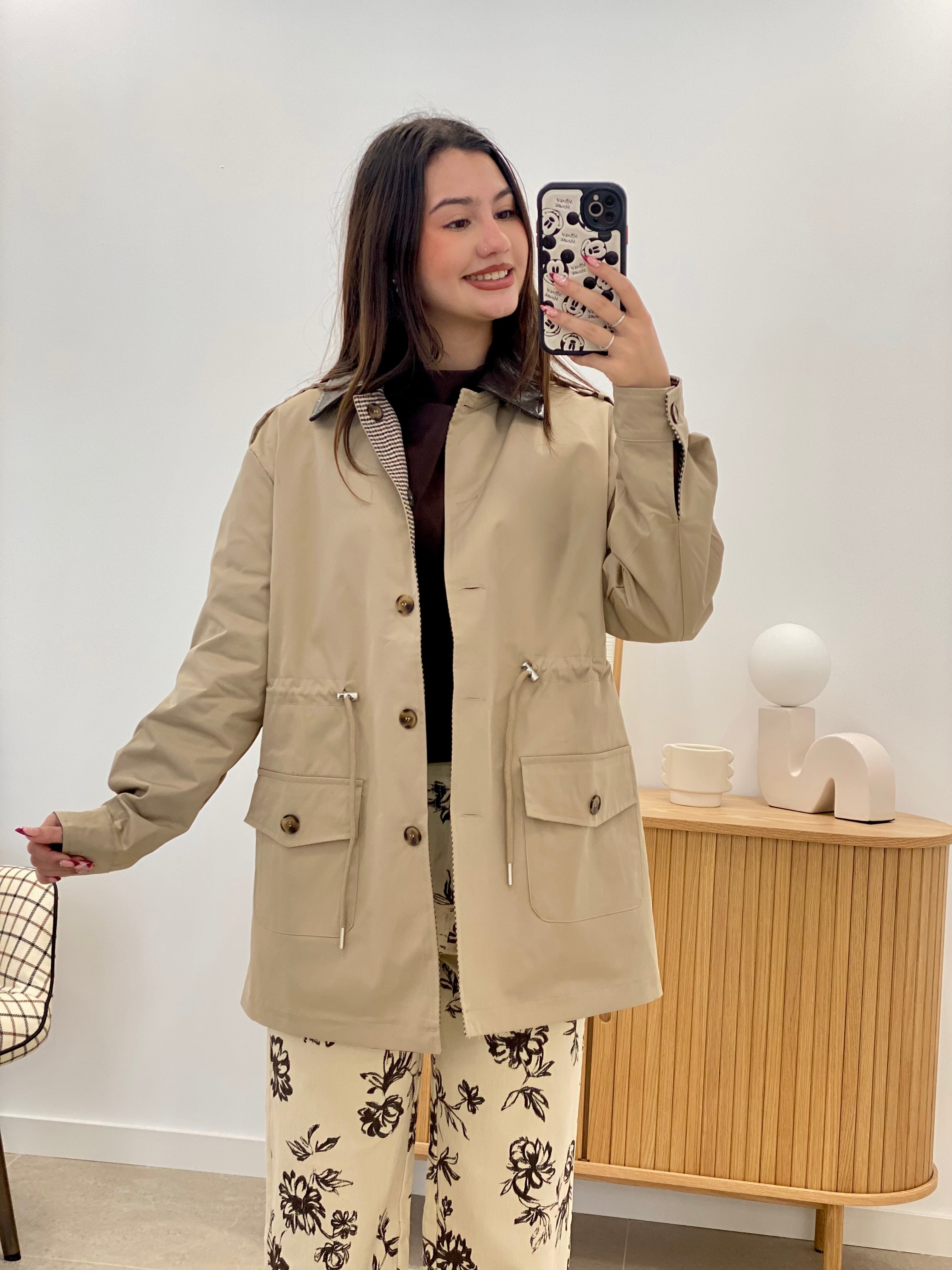 Gabardina con posibilidad de hacerse reversible confeccionada en 100% poliéster, ofreciendo versatilidad y practicidad en un solo diseño. Disponible en tallas S a L, se adapta a diferentes siluetas. El cuello en polipiel añade un toque sofisticado y moderno, mientras que su construcción reversible permite dos looks distintos. Ideal para transiciones de estación, combina funcionalidad con estilo contemporáneo. Prenda versátil que maximiza tu guardarropa con mínimo esfuerzo.